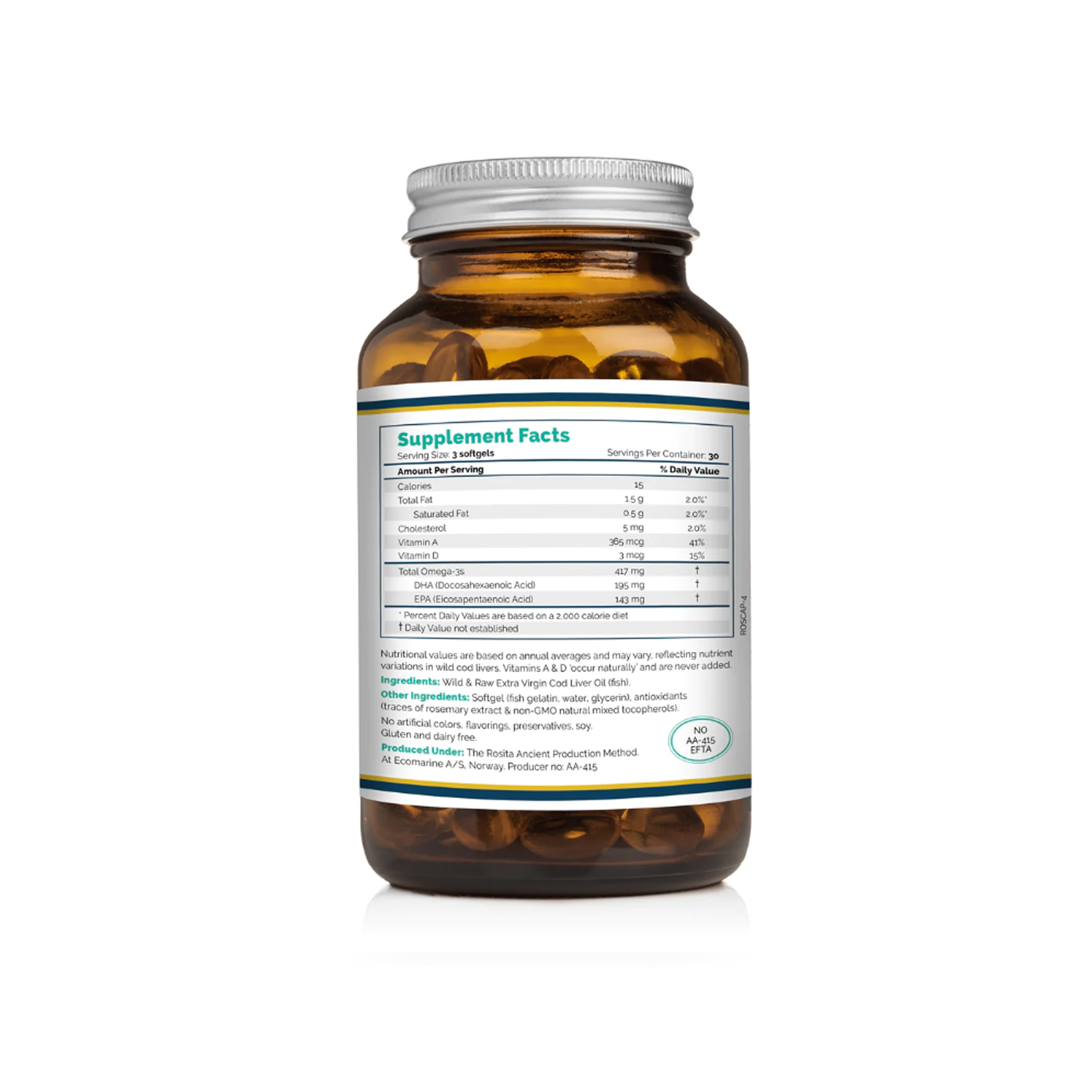 Wild-caught cod liver oil, rosemary, organic vitamin E.